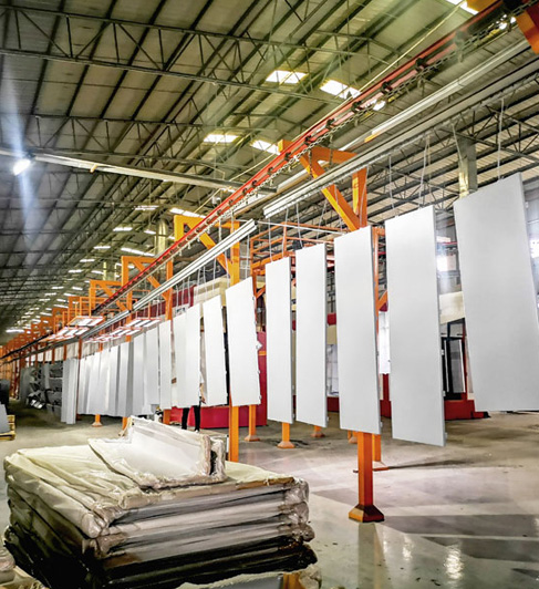 抗震、抗風:擁有全數控轉塔沖床15臺,折彎機近60臺,剪板機30臺,雕刻機20臺;專業(yè)的厚板(1.0-4.0mm)零色差生產工藝,涂層質量達到進口鋁單板水平;